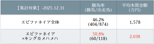 競走馬時代から同期キズナとのライバル関係が続いており、重賞馬はエピファネイア18頭に対してキズナ33頭と大きく後れを取るが、G1級優勝馬はエピファネイア7頭に対してキズナ5頭とリード。勝馬率などのアベレージは高いが、Roberto父系らしい一発長打の種牡馬と表現する方がしっくりくる。