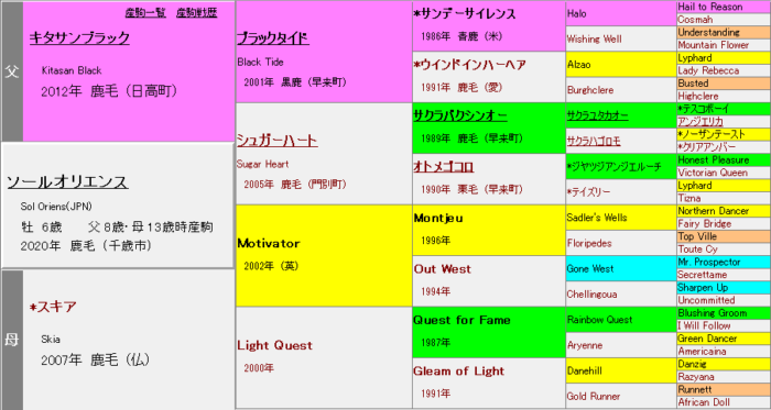 MachiavellianやOrpenなどの「Halo×Raise the Standard」血脈によってこれを導入し、シュヴァルグラン・サトノクラウン・サトノダイヤモンドといった現役時代の「ライバルの血」を取り込む形も趣深く、15頭と少ない頭数からスキルヴィングなどOP馬を3頭輩出する今後注目の配合パターン。ヴィクトワールピサ肌との配合なんかは凄くハマりそうな予感。