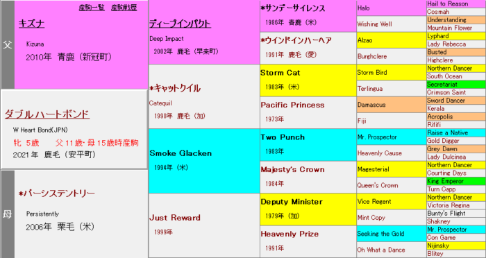 以上より、キズナ産駒でG1級を狙うには、ディープインパクト×Storm Cat≒良質な「Nasrullah×Princequillo×Tom Fool」血脈の累進によって、しなやかさや軽快なスピードの要素を表面化させることが重要であると考える。キングヘイローやGone Westなどと相性が良いことも、同様の理屈で説明ができる。