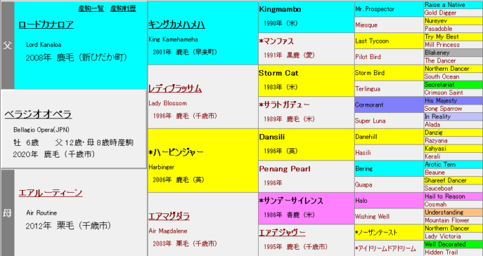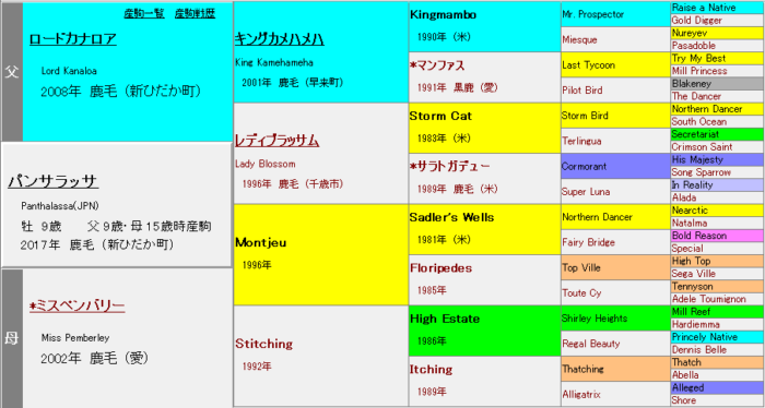母レディブラッサムはSecretariat=Syrian Sea3×4の同血クロスによって、最上級の「Nasrullah×Princequillo」血脈が凝縮されている。本馬はそこにキングカメハメハを重ね、Nijinsky≒Storm Bird、Tom Fool≒Bolero Roseによって、母父Storm Catの主要血脈を増幅。また、隠し味的にGraustark=His Majesty6×4で底力を補強した。北米チャンピオンサイアーStorm Catのスピードの絶対値の高さを忠実に遺伝しており、1200mに留まらずマイル戦でもその快速を発揮。2度のG1レコード更新、香港スプリント連覇、1200mを主戦場とした短距離馬として唯一の年度代表馬選出と、実績からすれば間違いなく日本史上最強のスプリンターである。