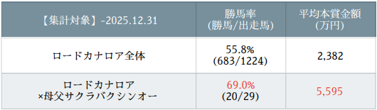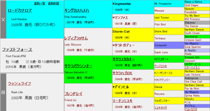 配合論のセオリーには反するが、サクラバクシンオー肌との配合はサトノレーヴ・ファストフォースの他、マイル以下のOP馬を多数輩出するニックス。これに関しては、「どちらも字面だけ見れば本質的に短距離血統とは言えない」という苦し紛れの言い訳しか出来ない。悔しい。