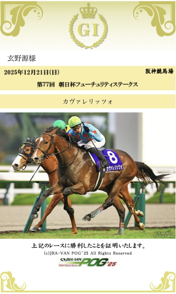 【25.12.21】朝日杯FS(阪神芝1600m)を勝利しました。